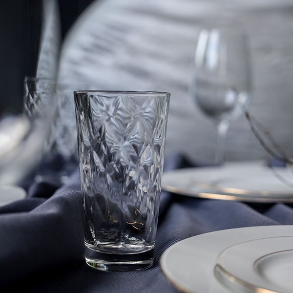 This glass is part of the Cube collection: all its products are characterized by a particular process that designs a cubic motif and creates spectacular light effects.