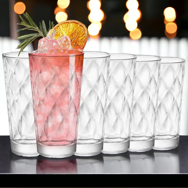 They are tall cylindrical glasses used especially for long drinks. The walls are thin which helps a quick cooling when they are filled with ice and gives a refreshing drink with slow dilution.