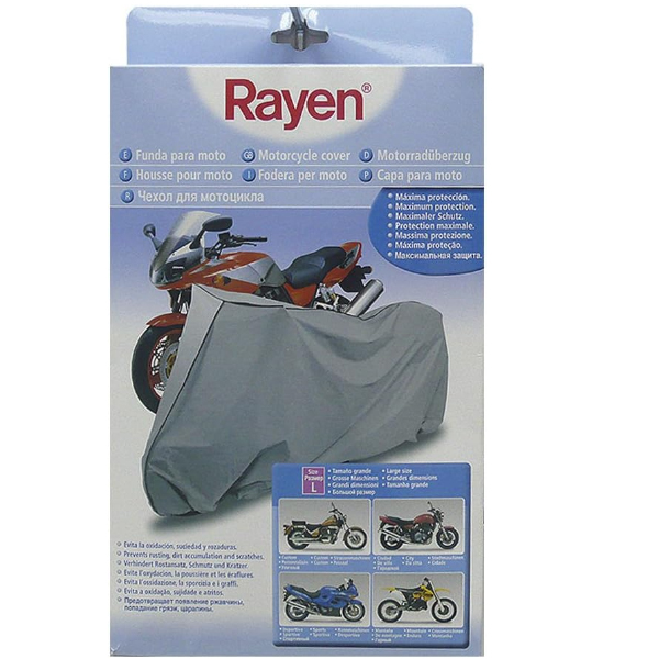 Motorcycle Cover from Rayen for maximum protection. Protects against sun, moisture, scratches and dust.